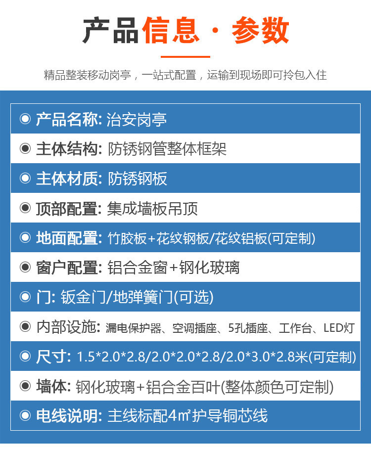 岗亭的安装很简单,有基础的直接叉车从车上叉下来放好即可。如需要上门安装可与我们协商。