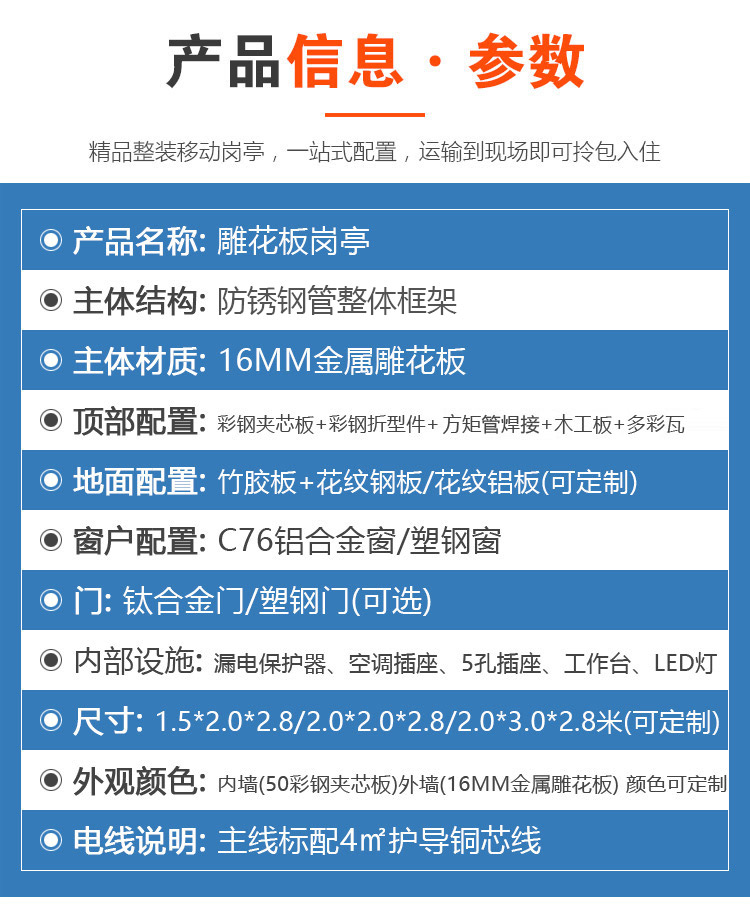 岗亭的安装很简单,有基础的直接叉车从车上叉下来放好即可。如需要上门安装可与我们协商。