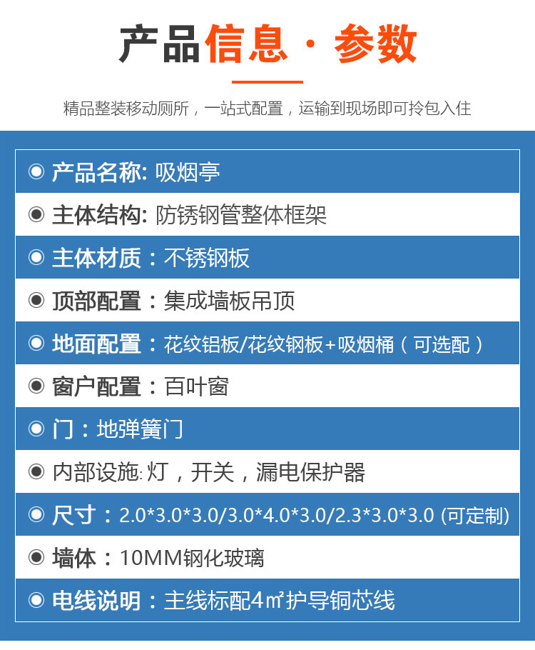2*3*2.8(米) 2.3*4.0*2.8.0(米) 3*4*2.8(米) 尺寸/配置/可定制